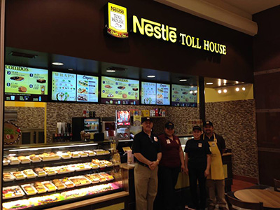 The premium dessert destination concept is built around the world’s most powerful food name – Nestlé. Along with its universally loved Nestlé Toll House cookies and great american cookie cakes, the café serves brownies, muffins, smoothies, and Nescafé Milano premium coffee, and is also a great lunch option thanks to its made-to-order Crepes and Panini sandwiches. The new café also features digital menus displayed on six LED screens and an upgraded design that showcases the fat brand’s distinctive product offerings in a more efficient and attractive manner.