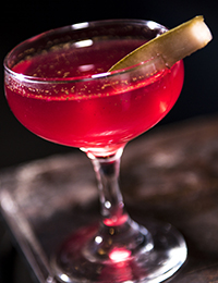 - Tripping on Daisies and Daffodils, made with hibiscus-infused tequila, Dimmi, Falernum, R&D cherry apple bitters, acid phosphate and rose water;