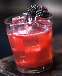 Candy Bracelets Candy Bracelets, made with Old Forester bourbon, lemon, blood orange, blackberry, demerara and R&D house bitters;