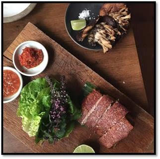 The Crispy Suckling Pig is just one of Chef Brandon Kida’s signature dishes at Hinoki & the Bird, a travel inspired dining concept located in Los Angeles.